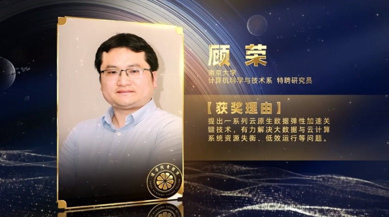 近日,阿里巴巴达摩院宣布了2023年度达摩院青橙奖(DAMO Academy Young Fellow)获奖名单,全国15位年龄在35岁以下的青年科学家获此殊荣,南京大学计算机科学与技术系顾荣老师入选,其获奖理由是:提出一系列云原生数据弹性加速关键技术,有力解决大数据与云计算系统资源失衡、低效运行等问题。