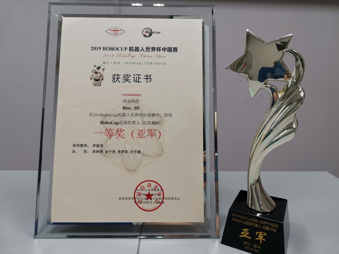 2019年4月18日-21日,2019 RoboCup机器人世界杯中国赛在浙江绍兴柯桥中国轻纺城国际会展中心举行。经过三天的激烈角逐,我系机器人智能与神经计算研究组(//casinolhj.com/rinc/index.html)的“Rinc_3D”团队(成员:高钟烨,谢子尧,易梦军,许子谦指导教师:申富饶)荣获仿真3D组一等奖(亚军)。