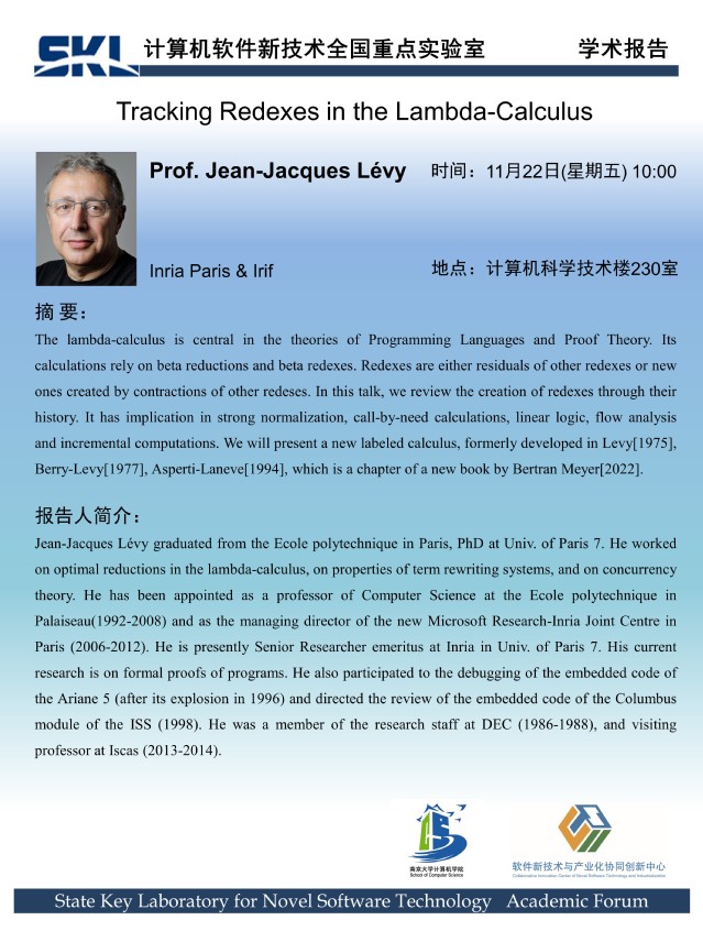 2024年11月22日 “软件新技术讲坛” 学术报告 - Prof. Jean-Jacques Lévy