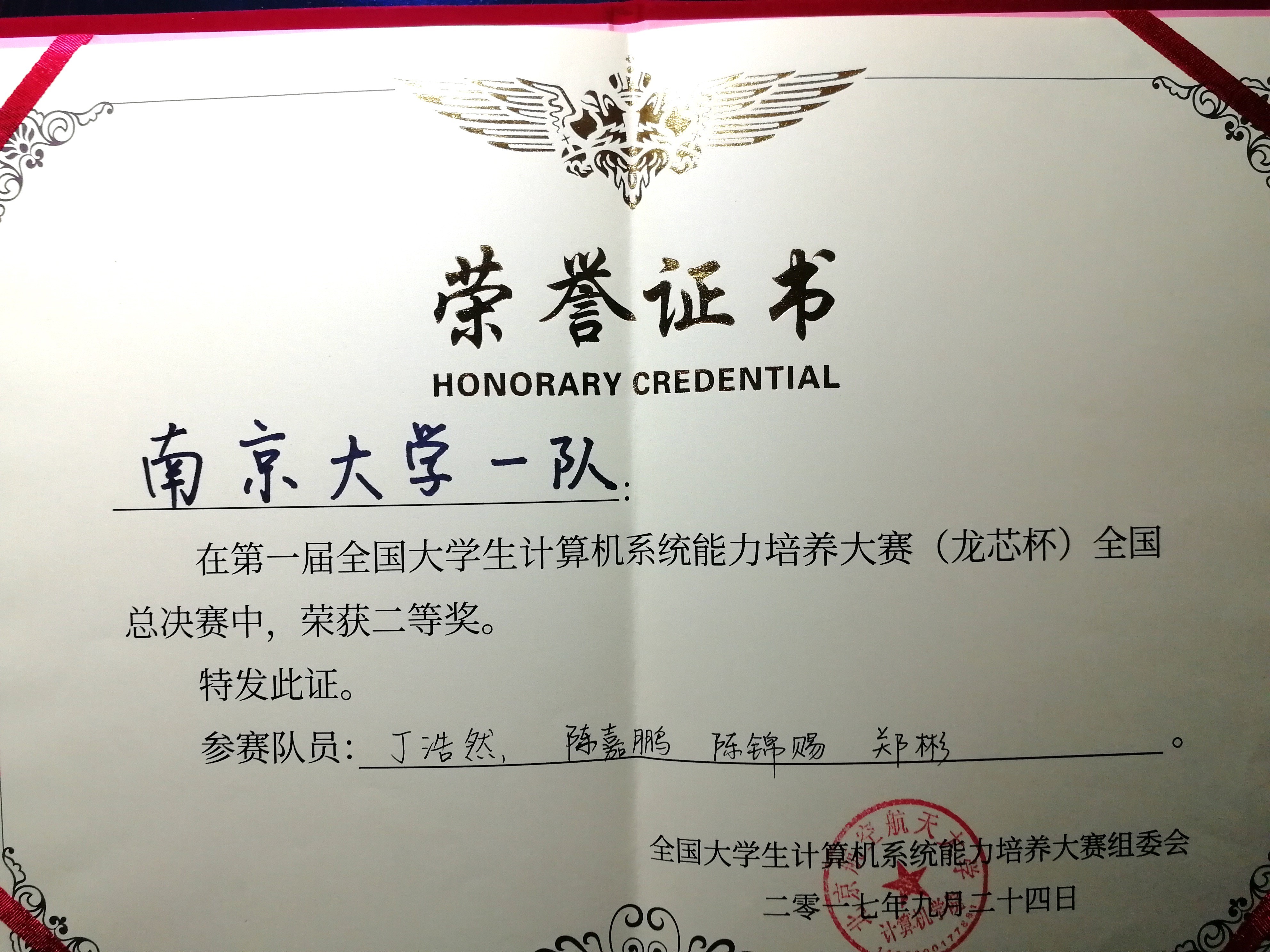 9月24日,由教育部高等学校计算机类专业教学指导委员会主办的第一届“龙芯杯”全国大学生计算机系统能力培养大赛在北京航空航天大学揭晓,南京大学两个参赛队伍均获奖,分别获得第2名和第9名,各自荣获二等奖和三等奖。