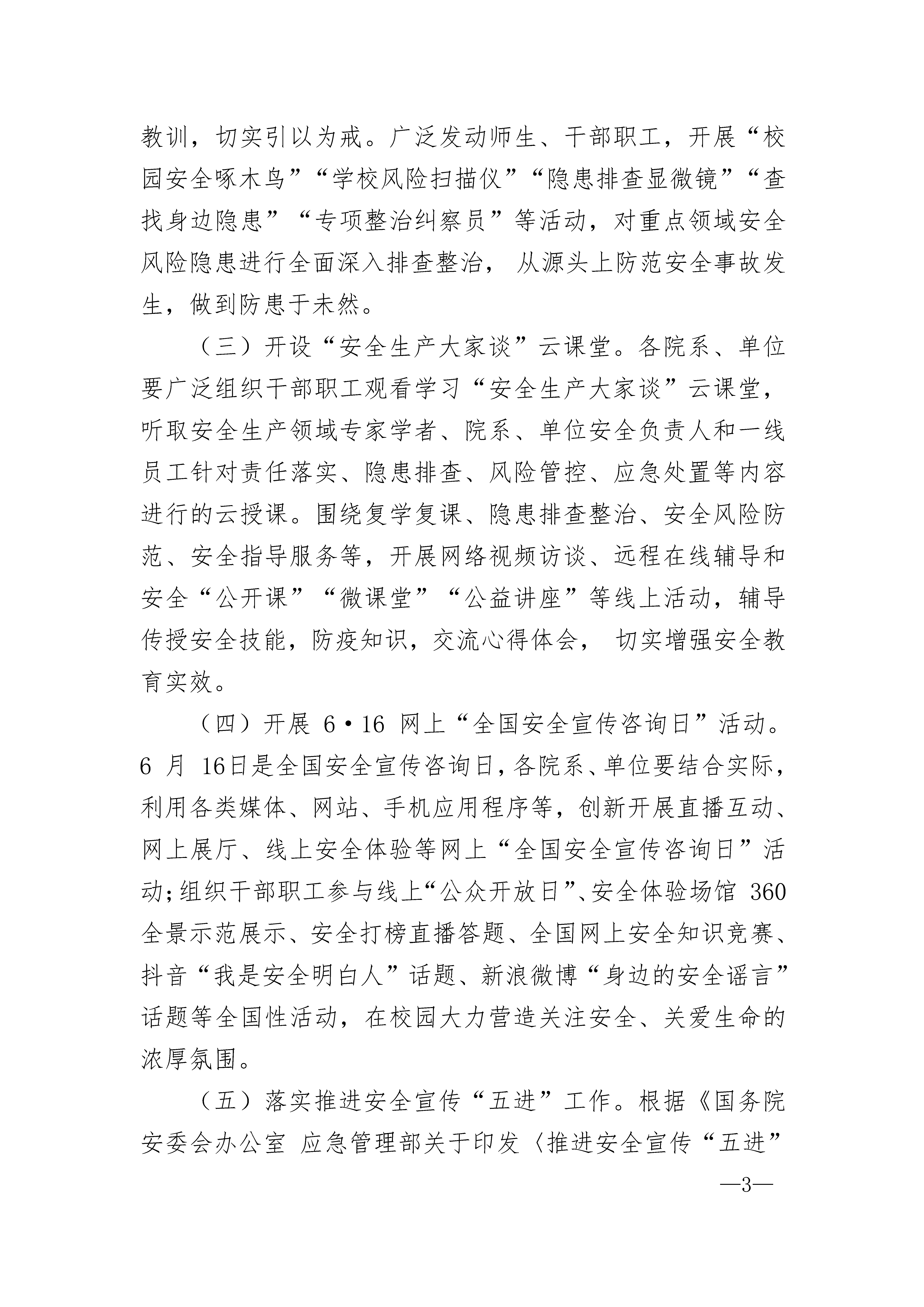 校长办公室关于开展2020年“安全生产月”“安全生产万里行”和“安全专项整治三年行动”活动的通知