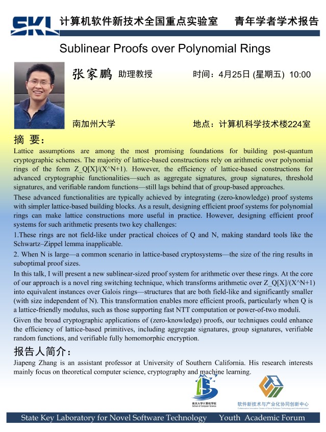 2025年4月25日 “软件新技术讲坛” 学术报告 - 张家鹏 助理教授