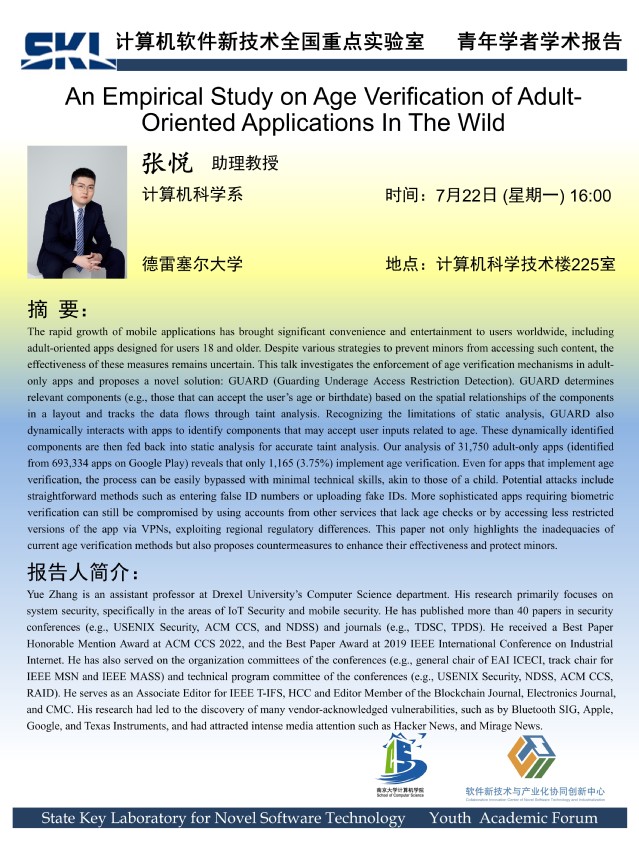 2024年7月22日 “软件新技术讲坛” 学术报告 - 张悦 助理教授