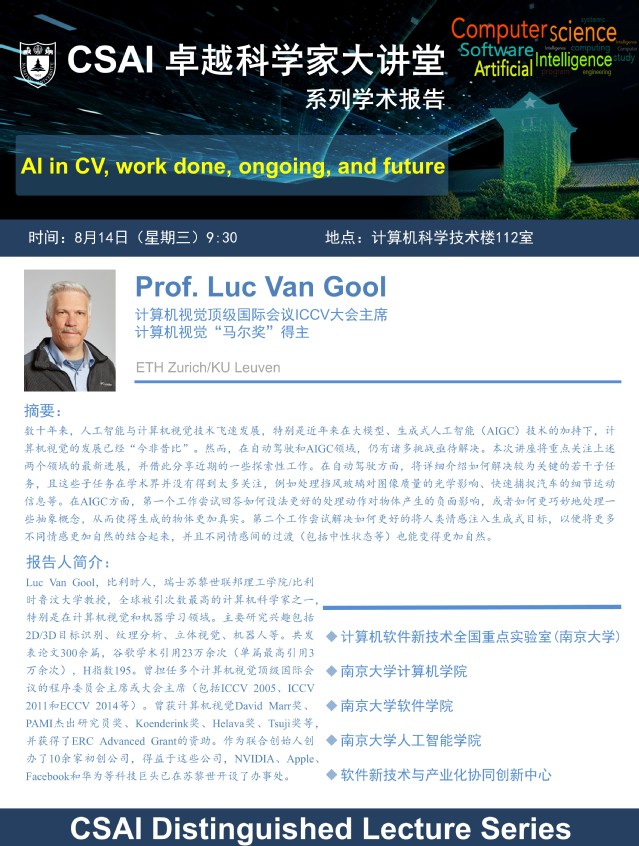 2024年8月14日 “CSAI卓越科学家大讲堂” 学术报告 - Prof. Luc Van Gool