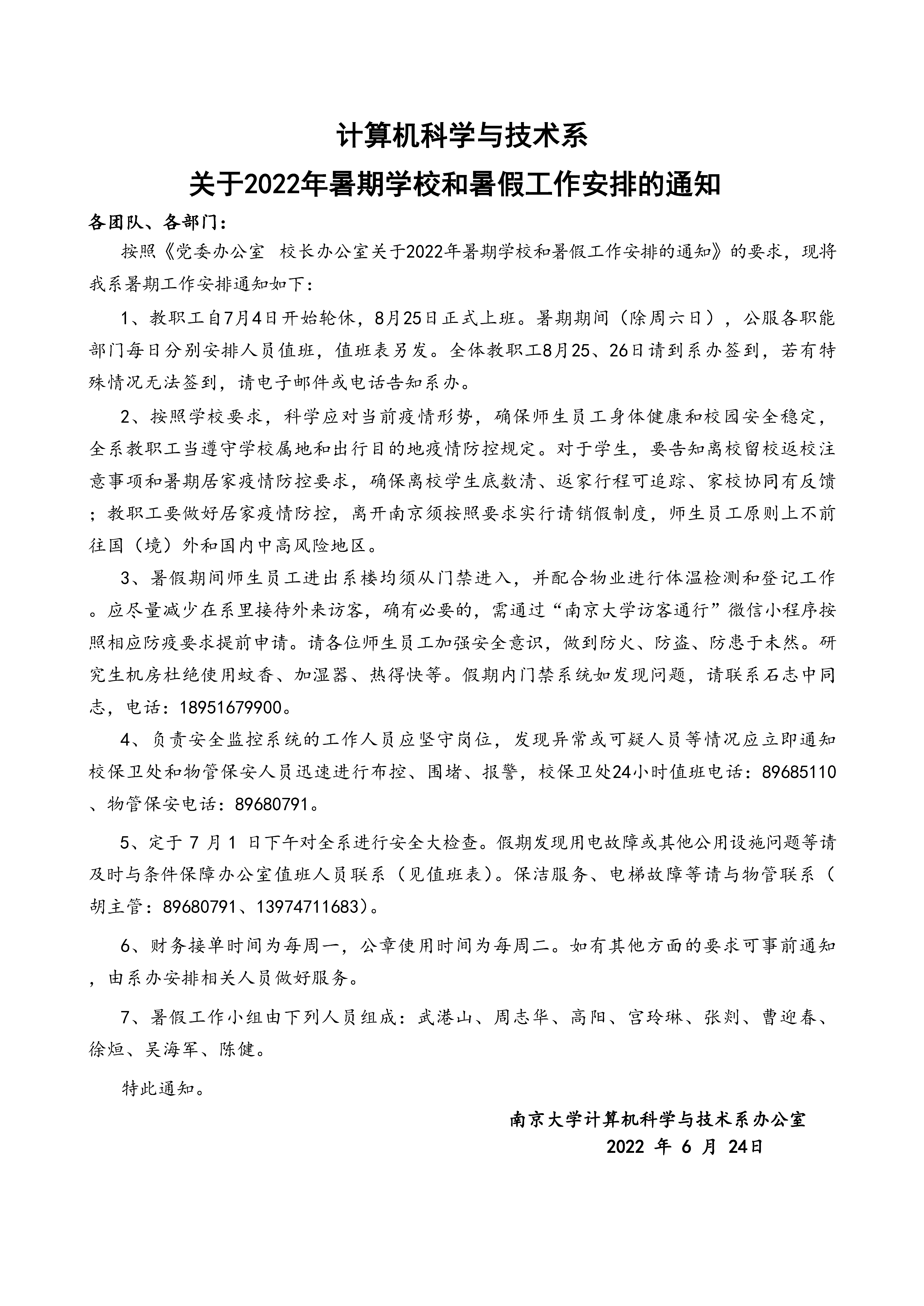 计算机科学与技术系关于 2022年暑期学校和暑假工作安排的通知