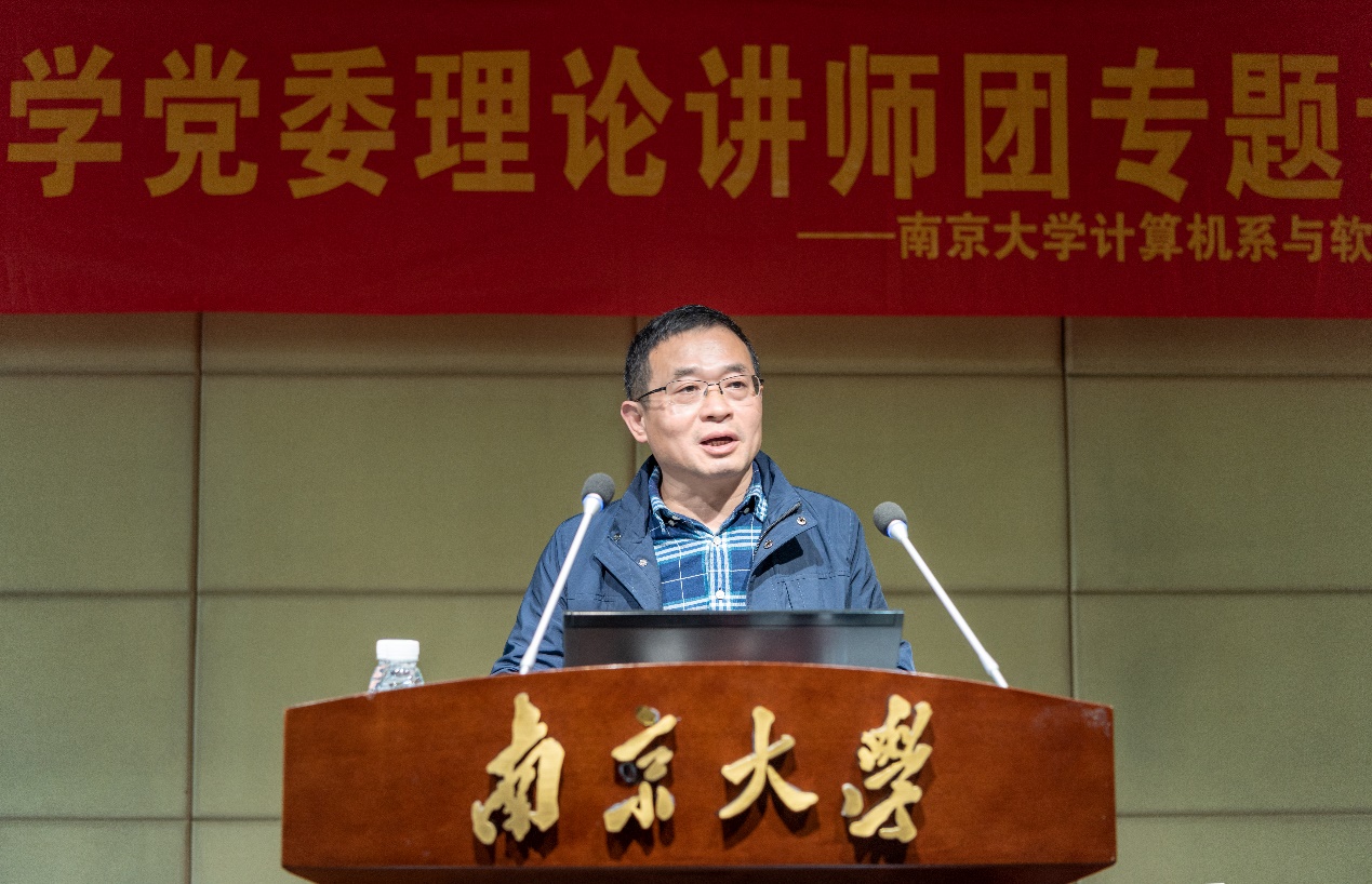 2021年4月28日下午,计算机系与软件赌场老虎机 党委邀请南京大学党委理论讲师团专家沈伯平教授作题为“新中国史·改革开放史——百年中共与中国道路话语权建构”的党史专题讲座。计算机系与软件赌场老虎机 党委书记武港山出席并主持讲座,计算机系和人工智能赌场老虎机 的全体师生党员及发展对象参加。