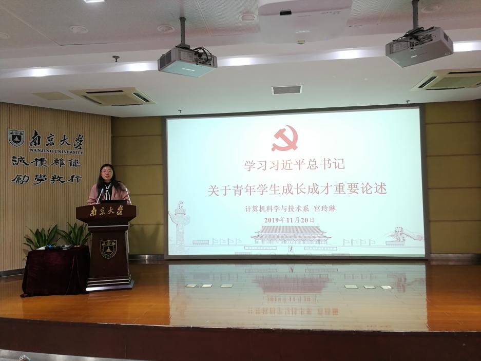 为深入推进“不忘初心、牢记使命”主题教育活动,强化党员同学的使命与担当意识,2019年11月20日下午,计算机系本科生党支部特邀系党委副书记宫玲琳老师,以“学习习近平总书记关于青年学生成长成才重要论述”为主题,为全体支部成员讲授专题党课。宫书记从八个方面出发,一一解读习近平总书记对当代青年人的寄语: