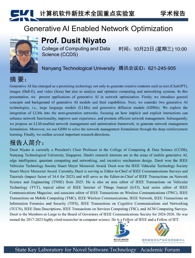 2024年10月23日 “软件新技术讲坛” 学术报告 - Prof. Dusit Niyato