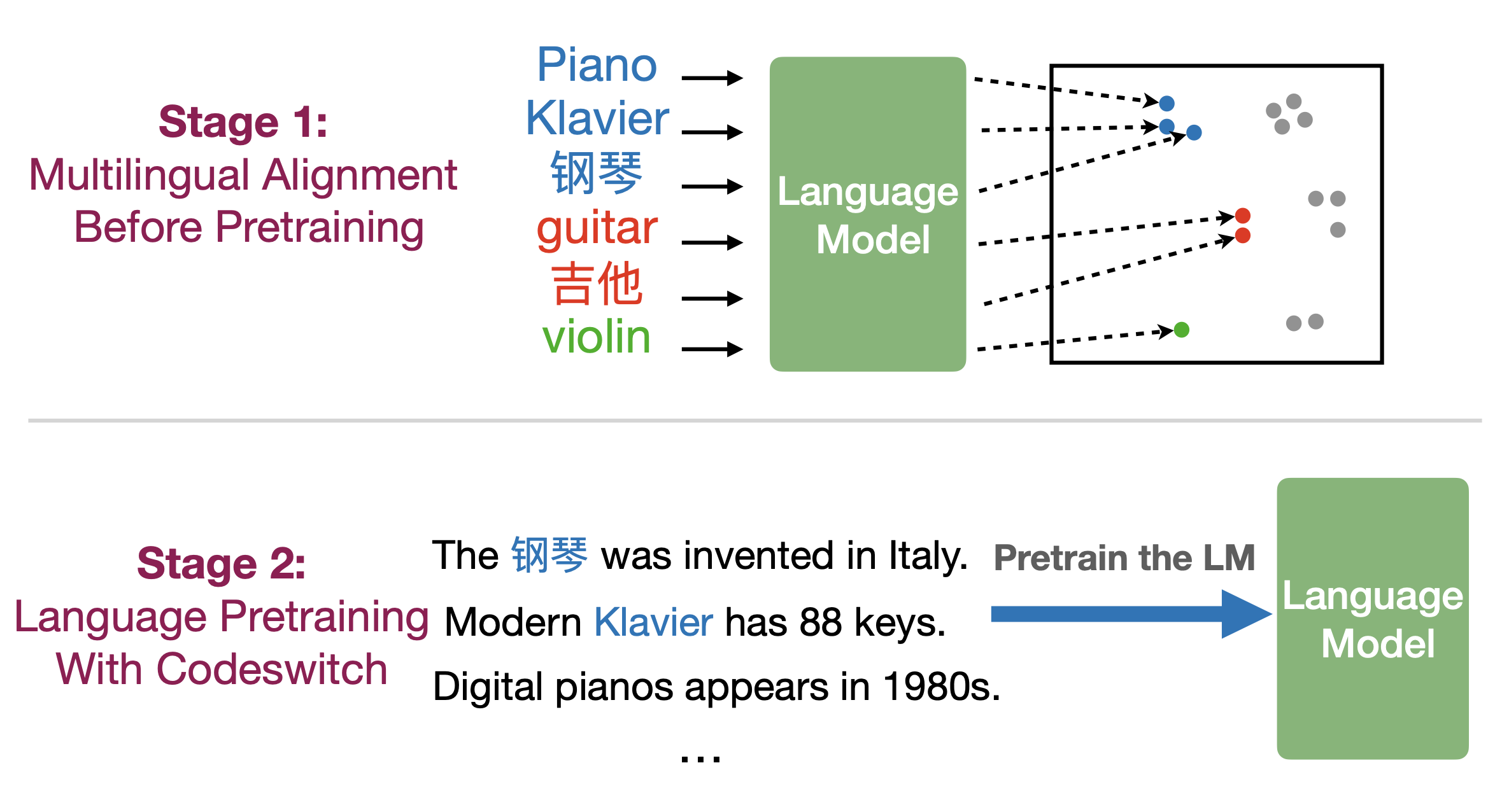 大语言模型往往在以英语为中心的语料上进行训练,训练语料中其余语言数据只占很少的比例。尽管如此,现有的LLM仍然展现出了一定的多语言性能。这是因为LLM执行多语言任务的能力与模型多语言对齐能力(为平行文本生成相似的表示)正相关,而近来的研究表明,LLM可以自发形成一定程度的多语言对齐。然而,这种自发形成的对齐能力仍然相对较弱,这导致模型在跨语言知识检索和跨语言行为一致上仍然存在较大问题。该工作提出了预对齐(PreAlign)框架,通过将对齐建立的阶段提前到预训练之前,来更好地实现跨语言的迁移效果。为训练更加语言通用的大语言模型提供了一种可行方案。