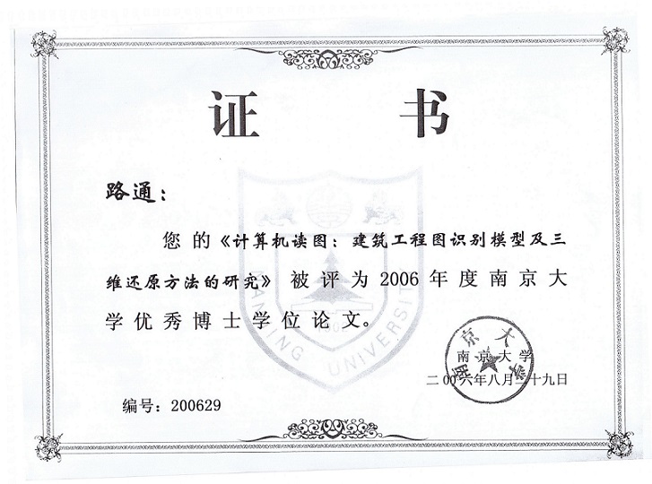 19. Selected as the Best Doctoral Dissertation of Nanjing University, 2006