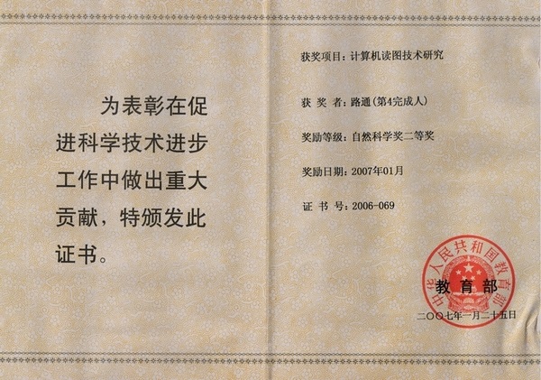 16. The Second Prize of Natural Science of Ministry of Education of the People's Republic of China, 2007