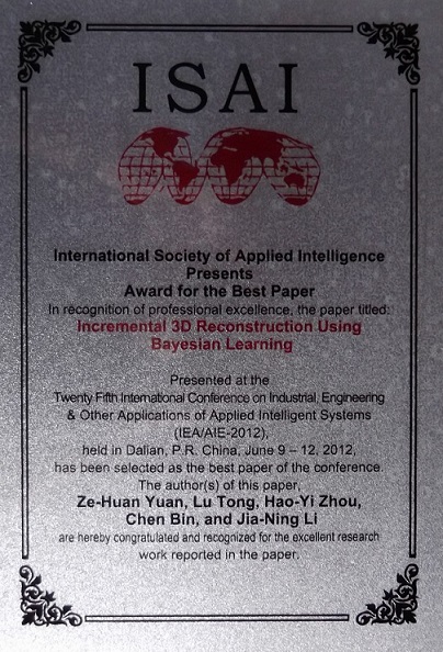 7. As the supervisor, the thesis titled "Incremental 3D reconstruction from videos using Bayesian learning" won the First Prize of Excellent BSc Thesis in Nanjing University, 2012 (altogether 18 First Prizes from all disciplines in Nanjing University)